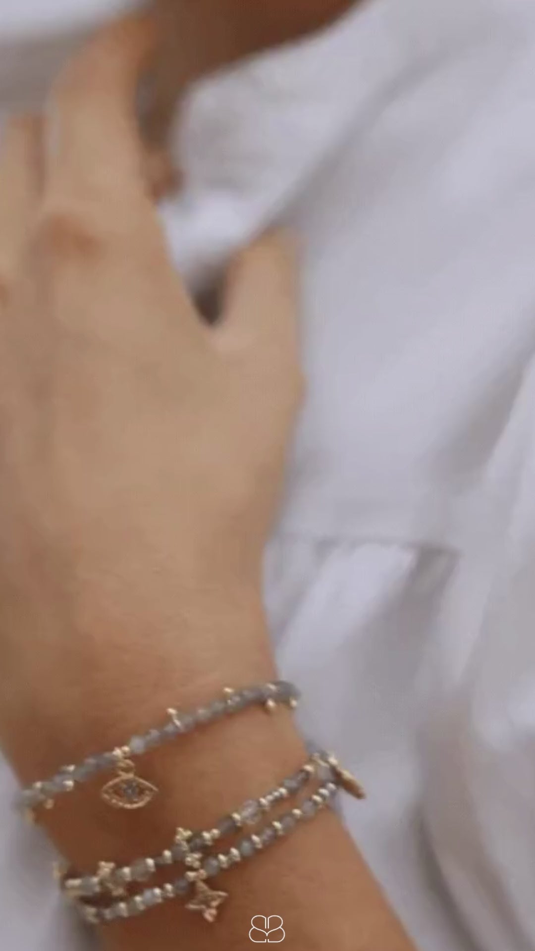 This gold bracelet is loaded with stylish soft grey labradorite gemstones. Known as the ‘Stone of mysticism’, labradorite is believed to bring clarity to your inner self, to restore strength and perseverance, to encourage truth and peace, to promote sound sleep.